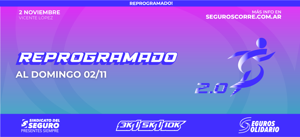 Importante: Debido a las condiciones adversas previstas para el domingo 5 de octubre, anunciadas por el Servicio Meteorológico Nacional, la carrera Seguros Corre 2025 será reprogramada al